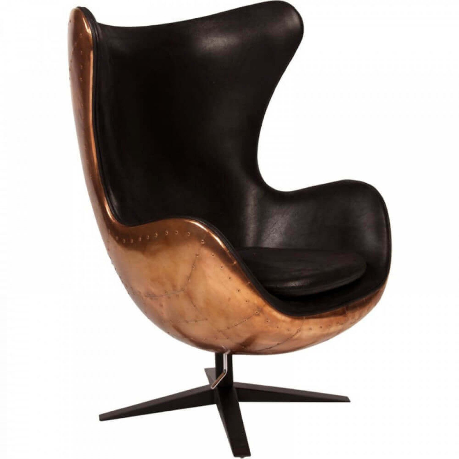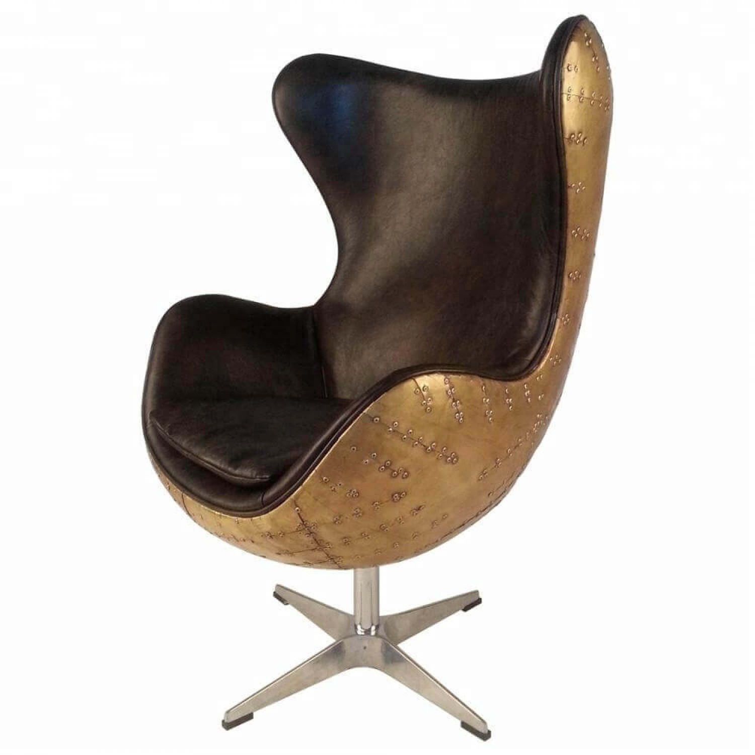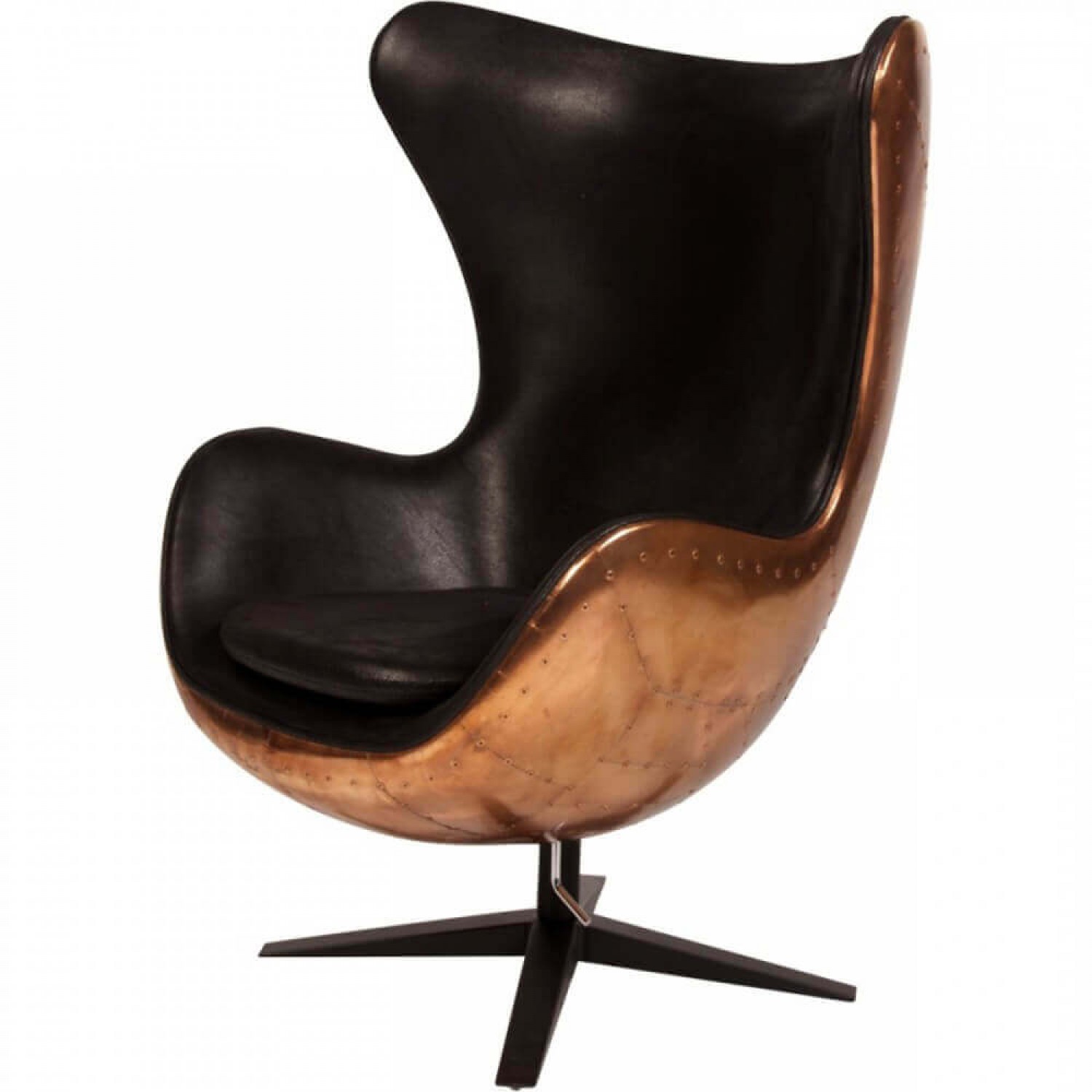 Дизайнерское кресло Egg Aviator из настоящей меди, оббитое натуральной или искусственной кожей. Кресло Авиатор, словно взятое из кабины футуристического старинного бомбардировщика, произведет эффект шоу-стоппера в интерьере вашей квартиры или офиса, подобно сверкающему ретро-самолету на авиационной выставке. Притягивающее взгляды ценителей хорошего дизайна оно точно не останется незамеченным и будет оценено по достоинству, еще раз убедив окружающих в Вашем хорошем вкусе.